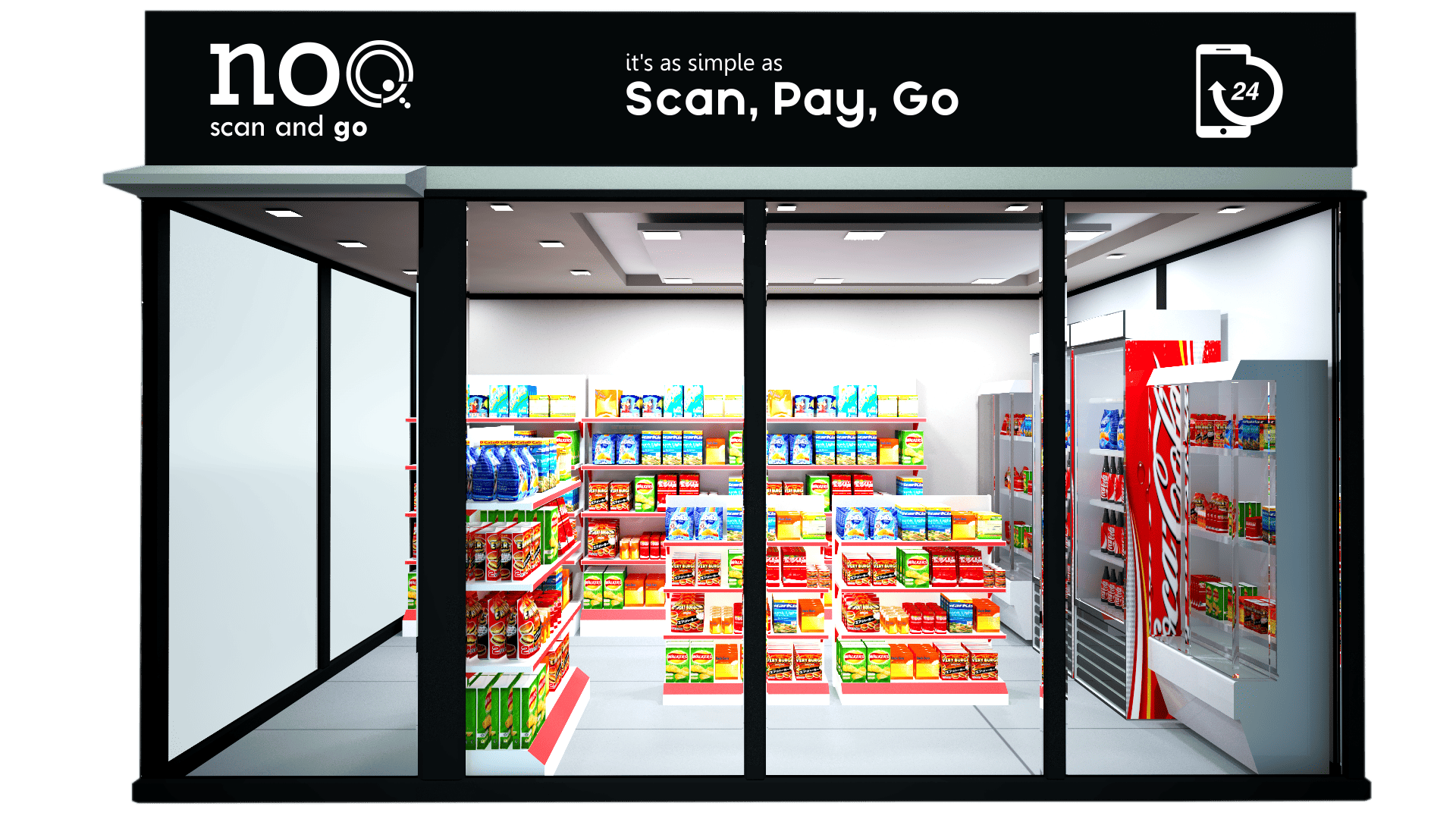 Scan & pay via the NoQ mobile app or automated kiosk